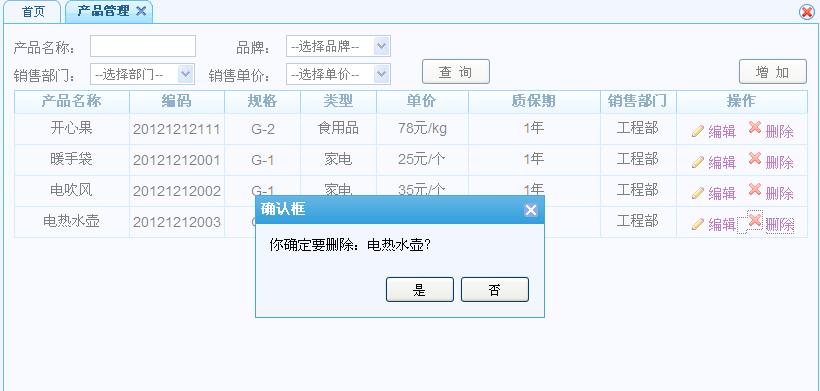 6、 产品售后管理:通过对客户退换商品记录、登记,便于后期总部进行商品更换,减少利益损失。