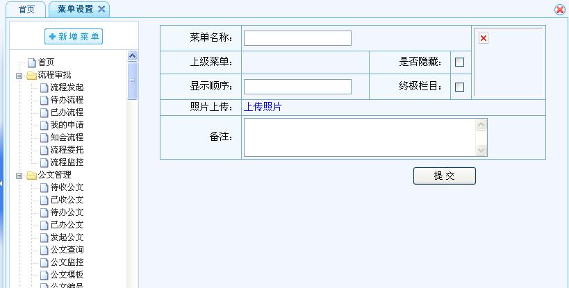 包括菜单名称、显示顺序、选择上级菜单管理和是否隐藏显示。