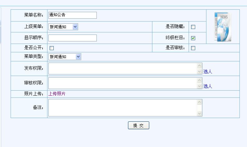 新闻中心或企业文化信息类菜单名称、显示顺序、隐藏显示。